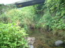 鯛の迫川におおいかぶさるように柿の木が二本