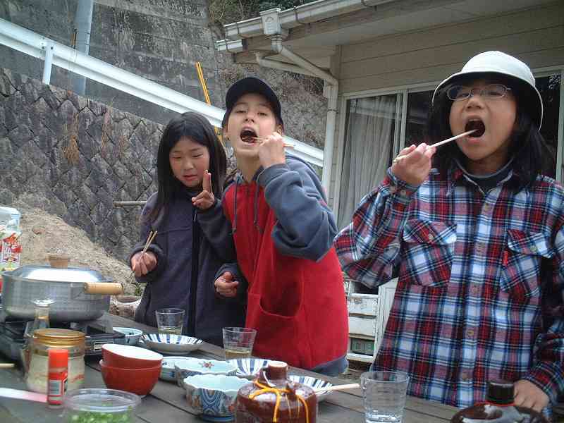 珍しい山の幸を食する体験があると聞きつけて、集まった鯛の迫川のメンバー、エリカ、りさ、いくみは、期待通りの美味に
