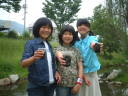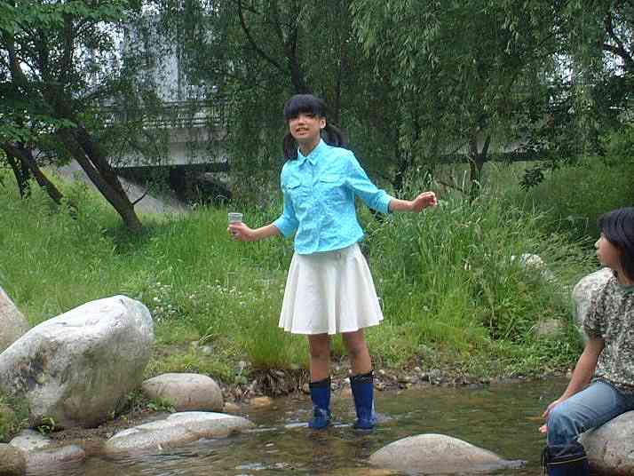 まい ゆか しゅうこの鯛の迫メンバーは中一に。初めての中間テスト対策に、ゆか宅合宿。夜の勉強にそなえて、午後はカワニナ採取で気分転換。水は温み、カワニナが岩にたくさんはりついていました。