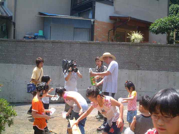かけつけた時はすでに水のかけ合いが始まっていて、子ども達はずぶぬれ。