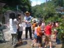 マムシの話に集まってきた子ども達。マムシにさわりたいといったのは、おもだあやか。(左2)