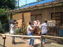 手前でザルを持つのは町内会長。ゆでたてのそうめんを井戸水でさらしています。
