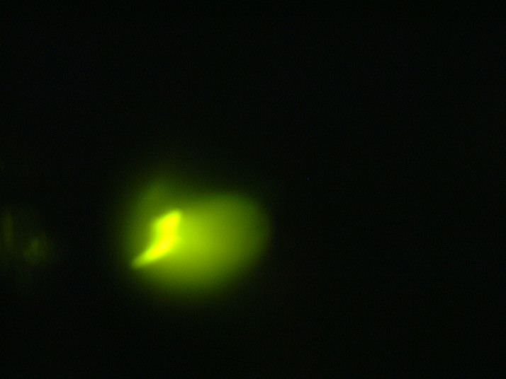 筒瀬で写真撮影。数は減っていたが、まだ4,50匹の光が見える。 |