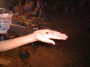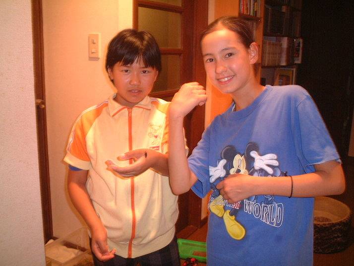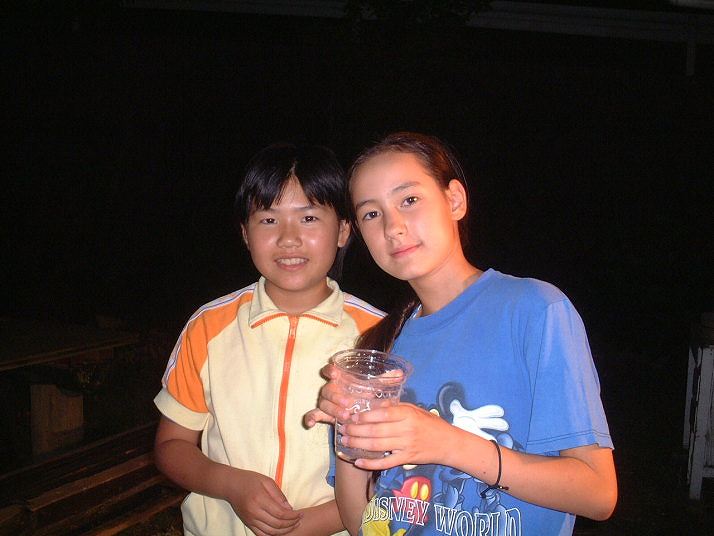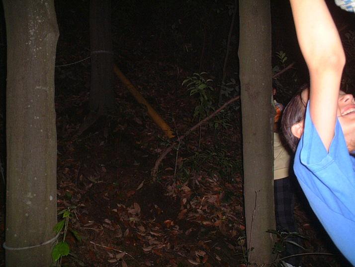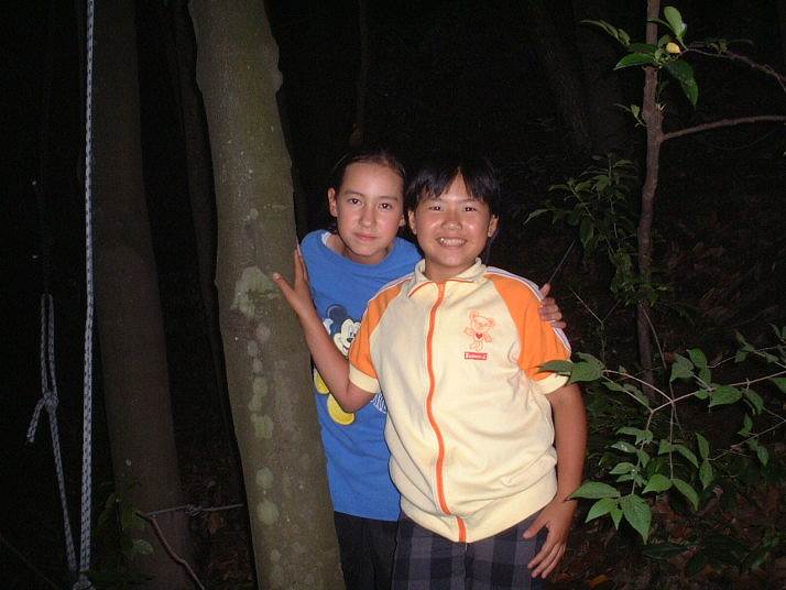 筒瀬で観察。ゆか、りさ同行。夜道を歩いて、川まで。ゆかは100mも先から、ほたるの光を見つけていた。約10匹飛んでいた。 |