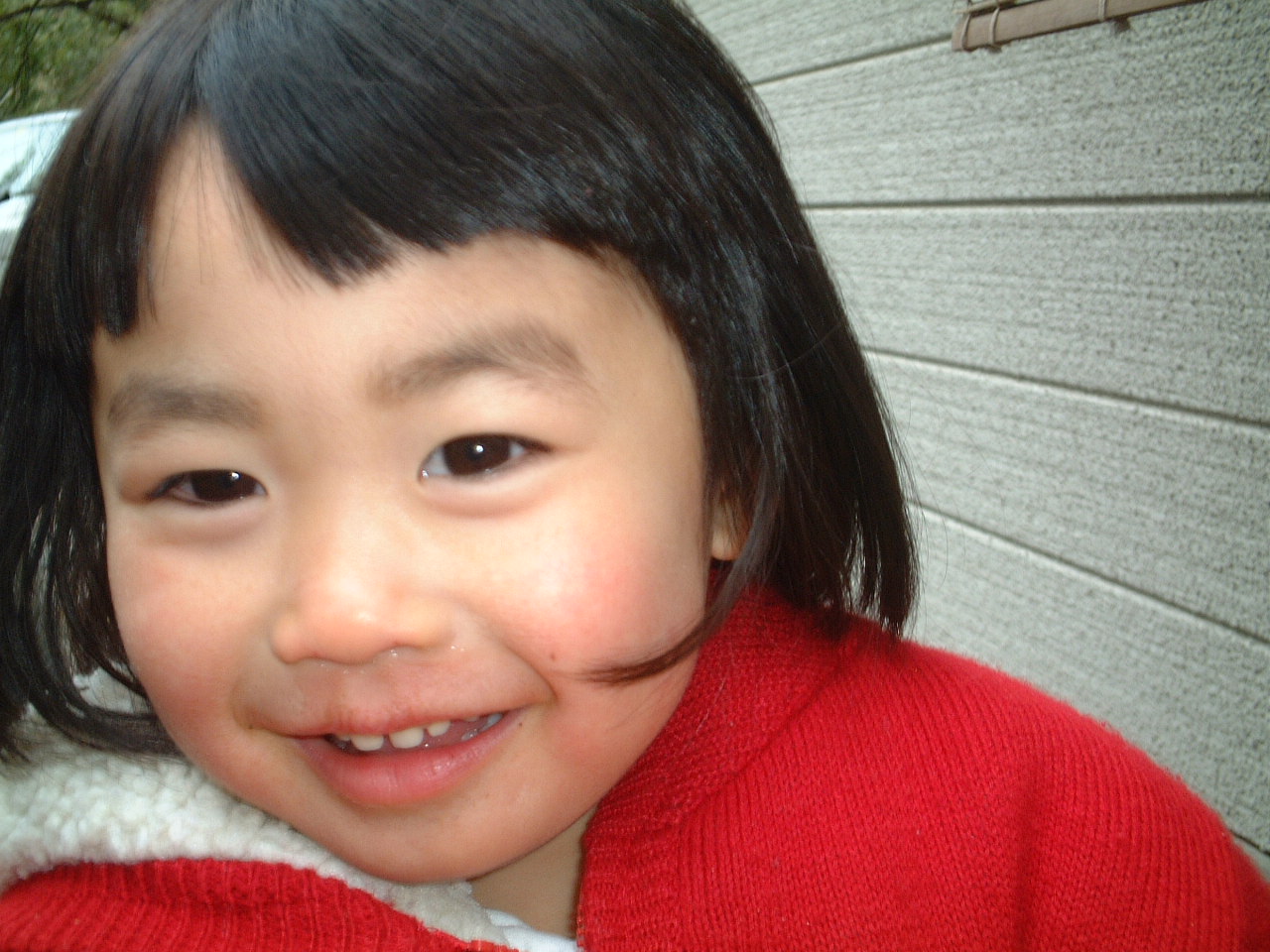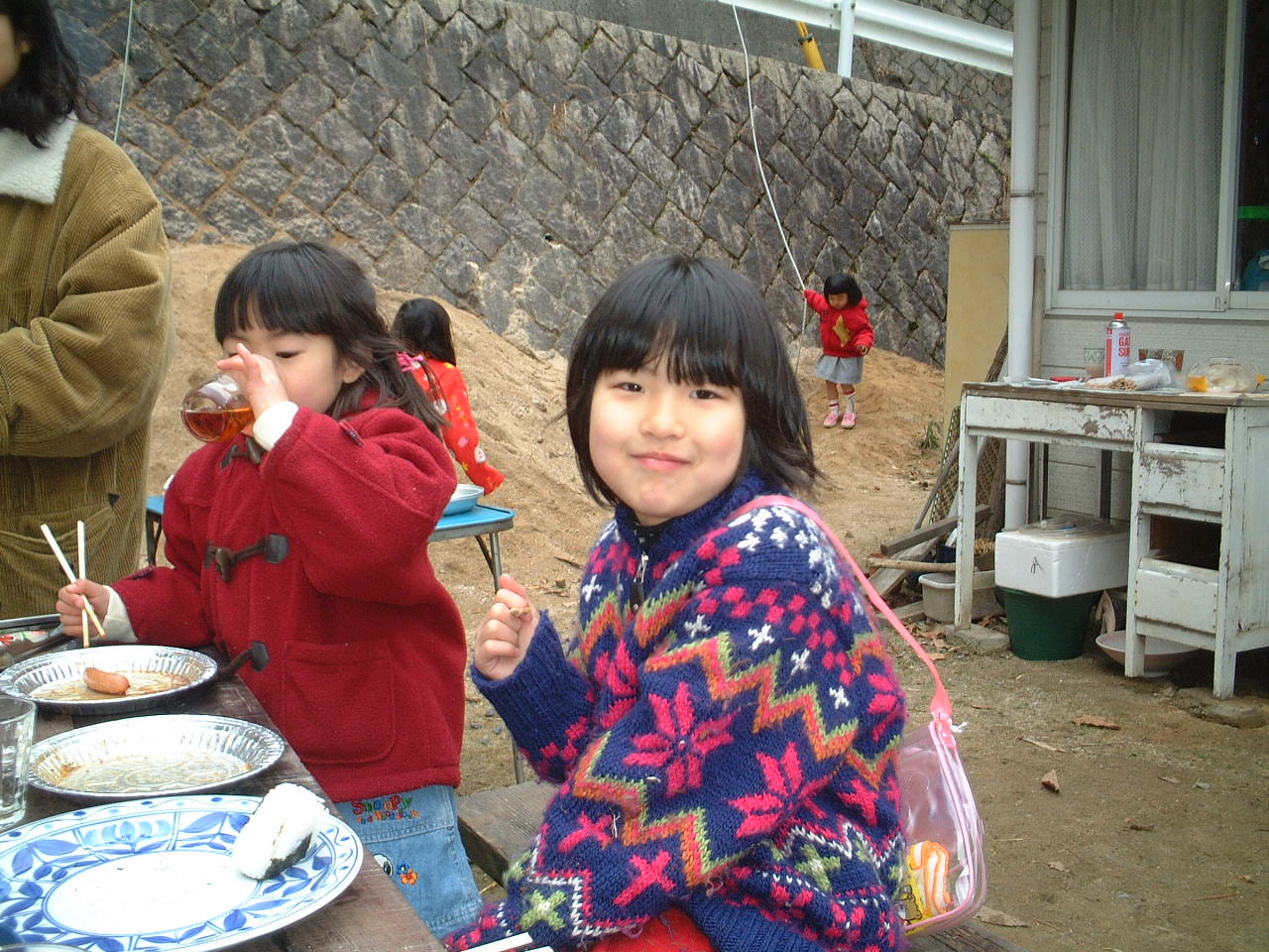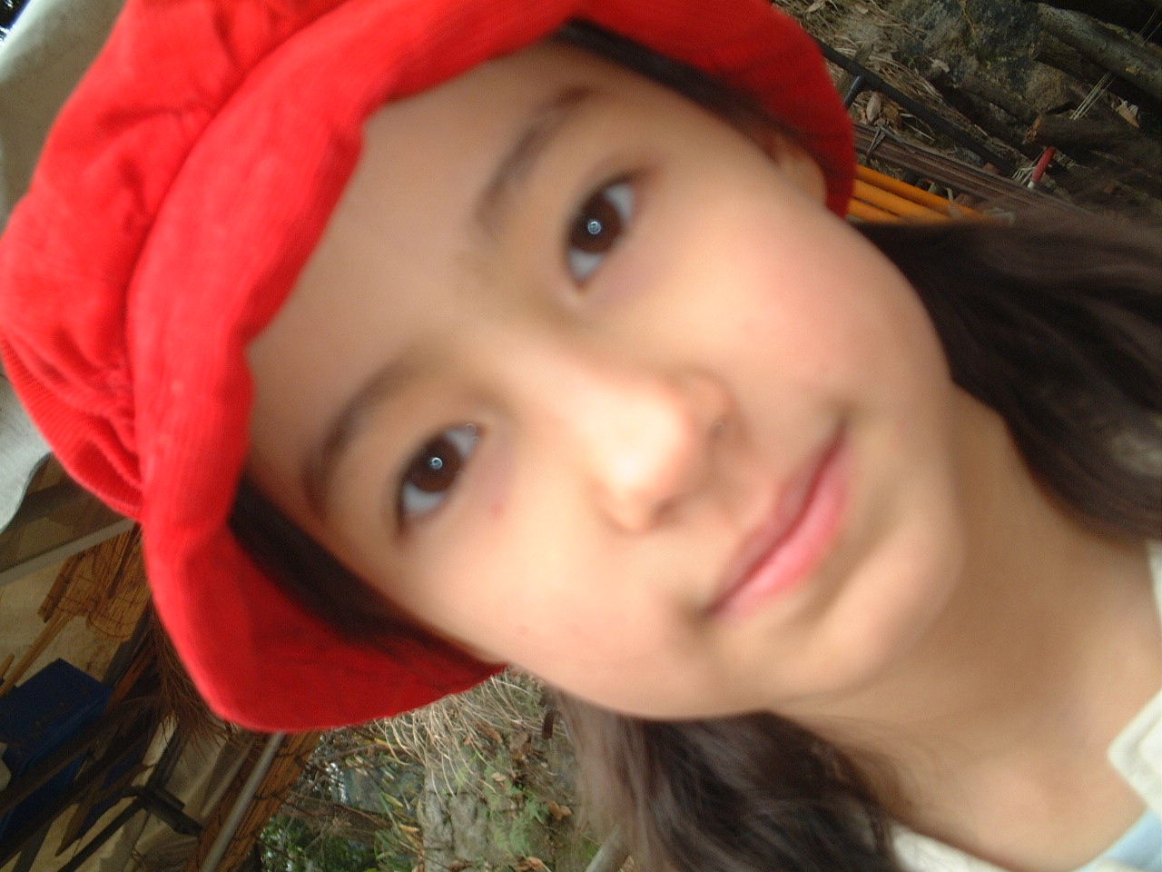 お母さんの手作りの赤い帽子がよく似合うエリカ(左 小3))今日はちょっと風邪気味でときどきコホン