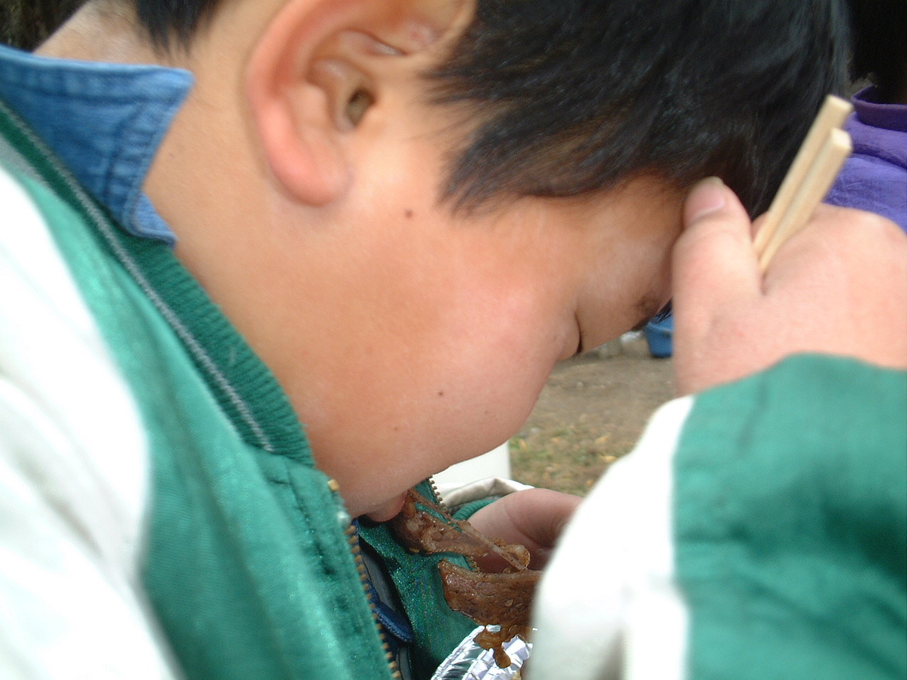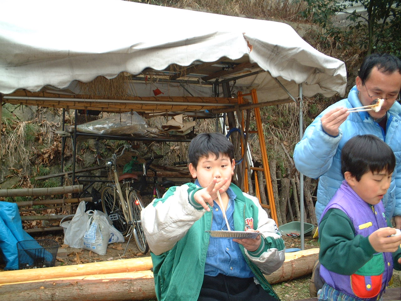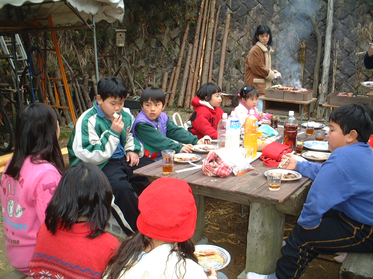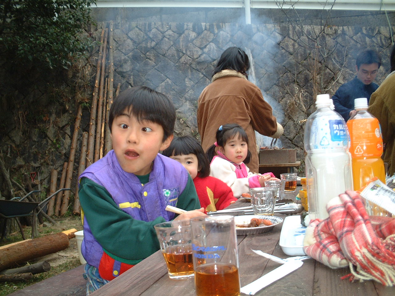 お母さんの手作りの赤い帽子がよく似合うエリカ(左 小3))今日はちょっと風邪気味でときどきコホン